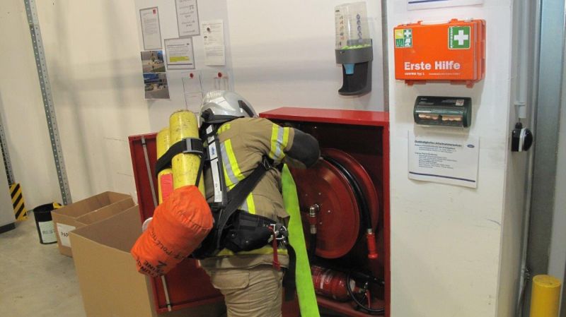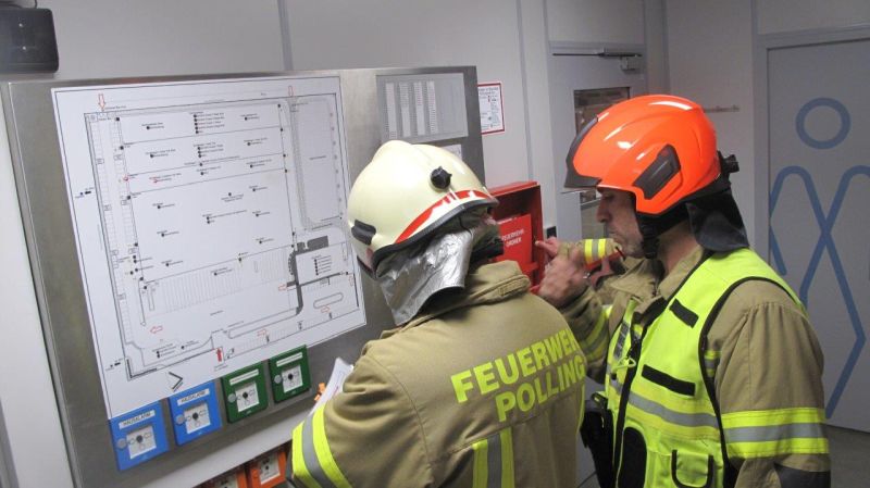 Bei dieser Übung wurde die Feuerwehr zu einen Brandmeldealarm im Gewerbegebiet Polling alarmiert. In einem Betrieb kam es zu einem Brandgeschehen im Aufenthaltsraum. Nach der Erkundung vom Einsatzleiter wurde vom TLFA der Löschangriff unter schweren Atemschutz durchgeführt. Für die Zubringerleitung wurde das Wasser mit der Pumpe aus dem Tiefbrunnen der sich am Firmenareal entnommen und bis zum TLFA von der Mannschaft des LFBA verlegt. Außerdem wurde noch eine C-Rohr für die Rückzugssicherung verlegt.
