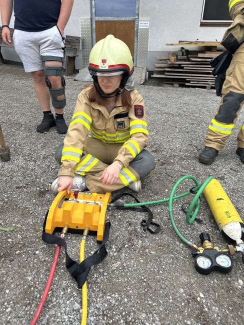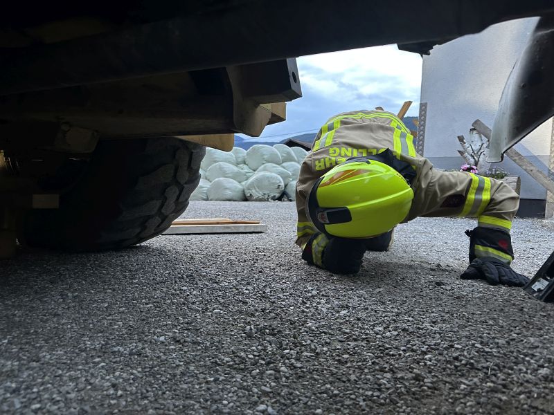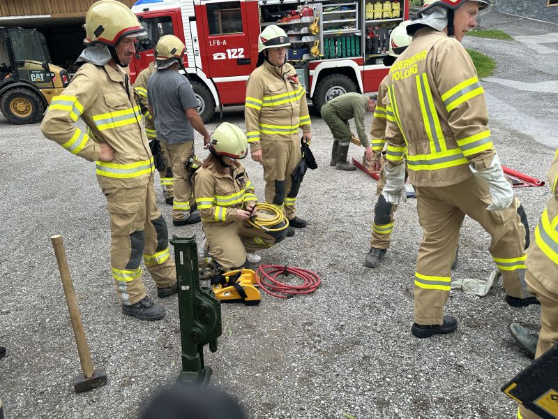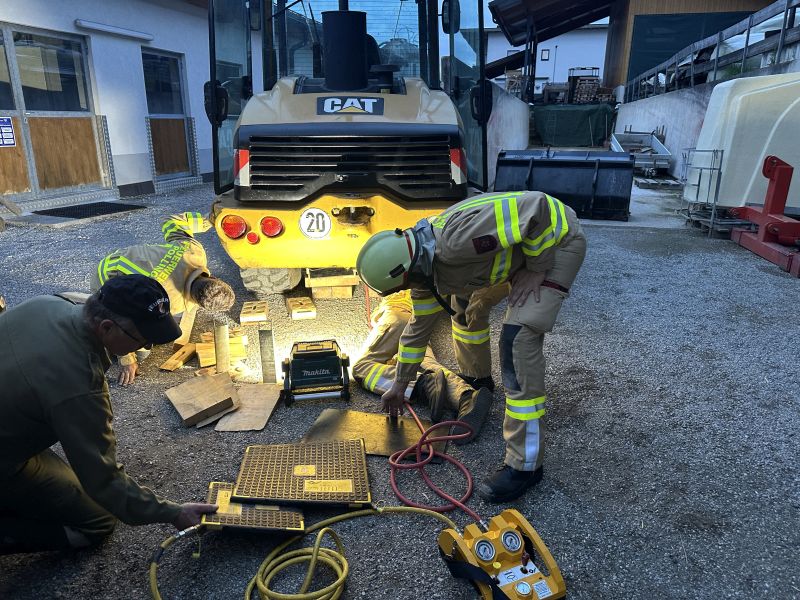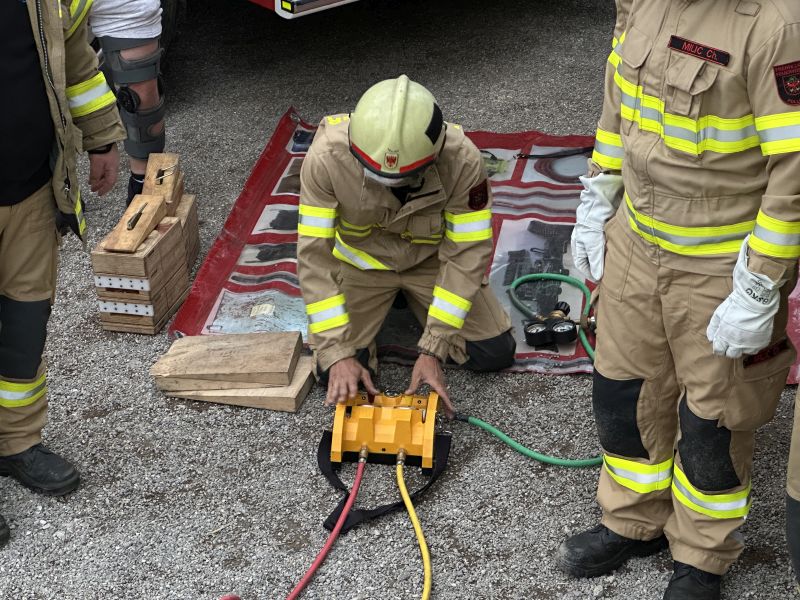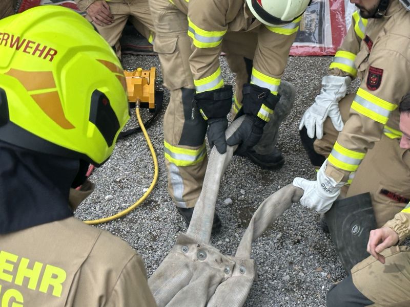 Bei der heutigen Schulung wurde in drei verschiedenen Stationen die Bergung von eingeklemmten Personen mit dem Hebekissen durchgeführt.