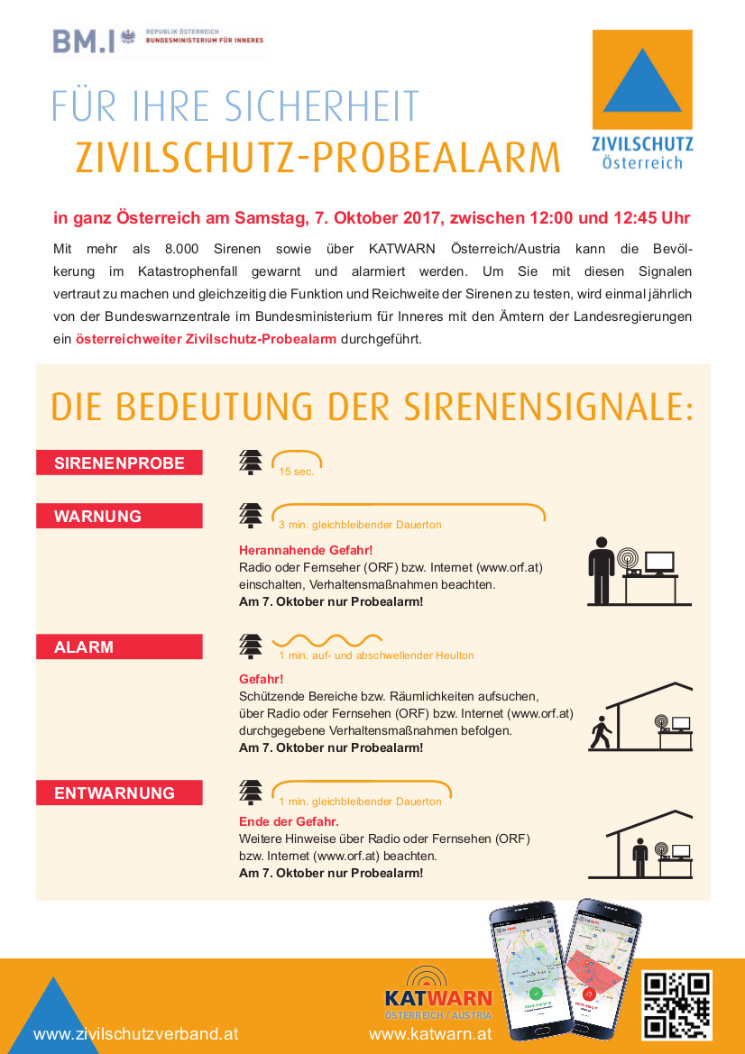 wird wieder der österreichweite Zivilschutz-Probealarm durchgeführt.