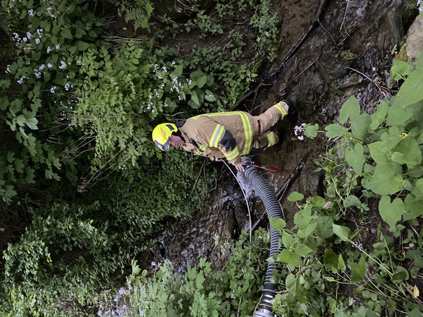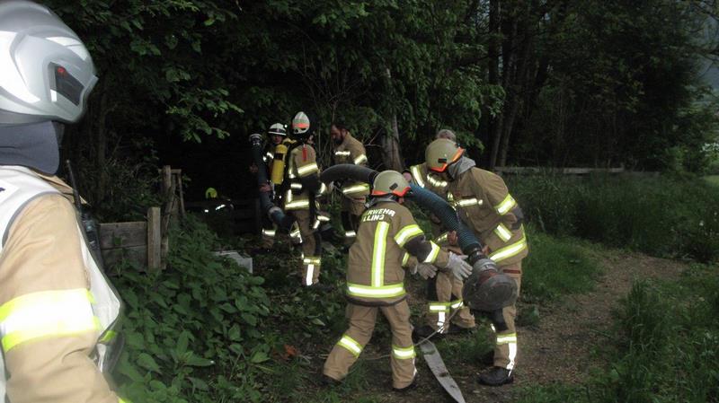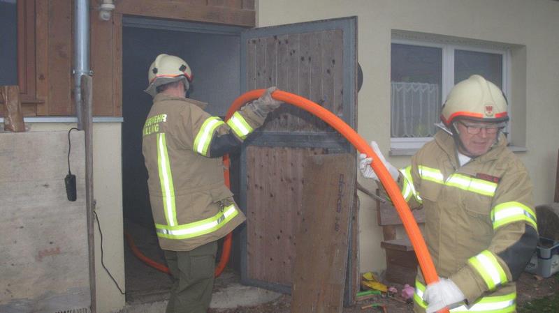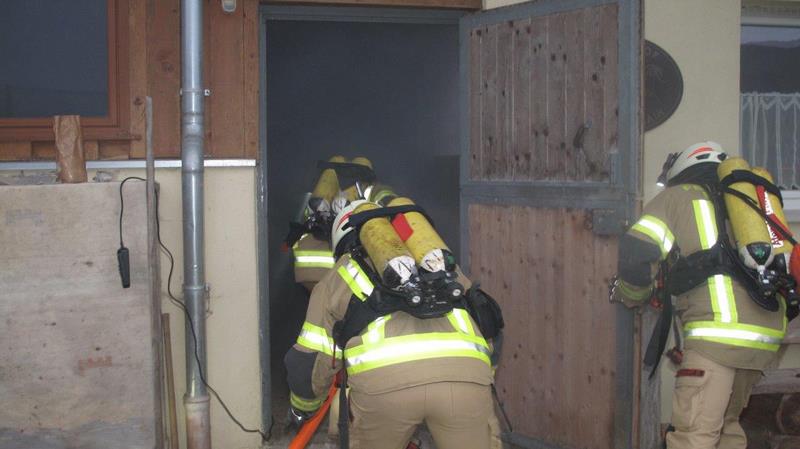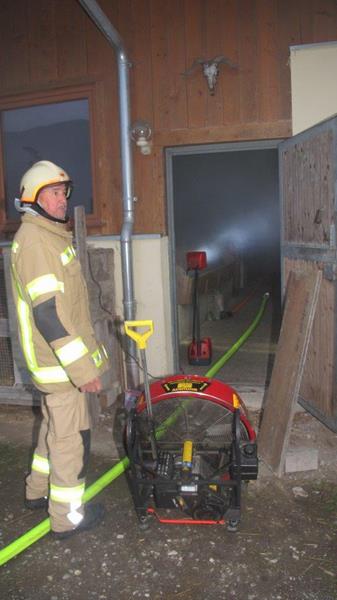 Bei dieser Übung mussten mehrere Personen aus dem stark verrauchten Gebäude geborgen und eine Brandbekämpfung durchgeführt werden. Weiters musste vom nahegelegenen Bach eine Zubringerleiter für den Tank verlegt werden und das Wohnobjekt geschützt werden.